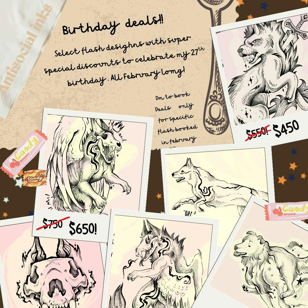 Kali is offering select flash designs with super special discounts to celebrate her 27th birthday! This deal applies only to select flash booked for a date in February.